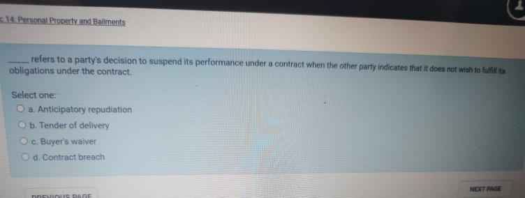 Solved Obic 14 Personal Property And Bailments Which Of The Chegg Com